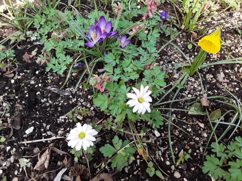 Die schönen Lerchensporne gefallen mir sehr! Zahnwurze sind hier noch nicht zu sehen, aber es regnet gerade, da tauchen sie vielleicht doch irgendwo auf. (Die Schildchen sind irgendwie unauffindbar, ich muss mich also überraschen lassen...)