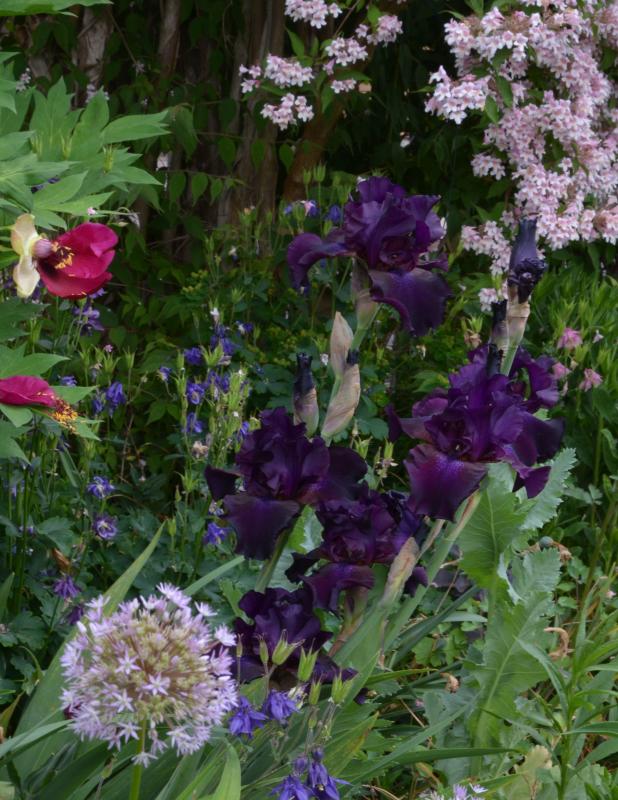 Ist das Anthriscus zur roten Paeonia + dunklen Iris (welche Sorten ?) Finde ich super gekonnt kombiniert,auch bei Dir, Ariane.