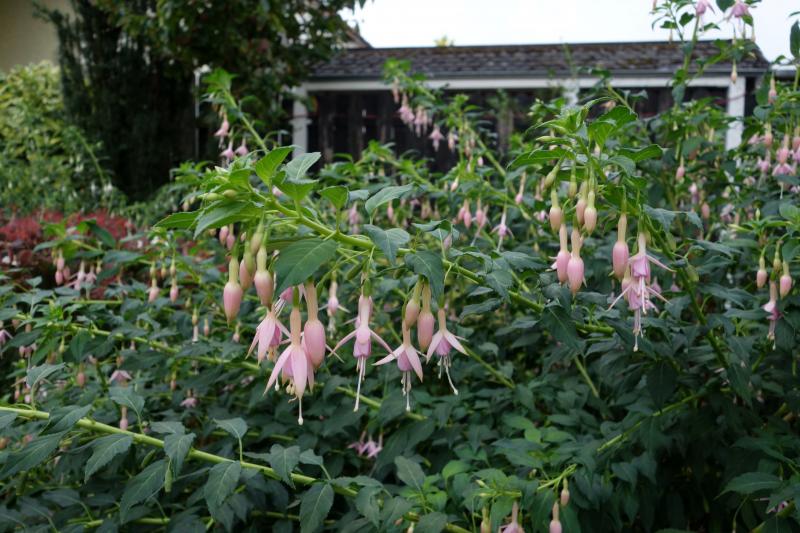 Da es noch keinen Nachtfrost gab, machen die winterharten Fuchsien auch noch viel Freude. In diesem Jahr sind sie riesig!