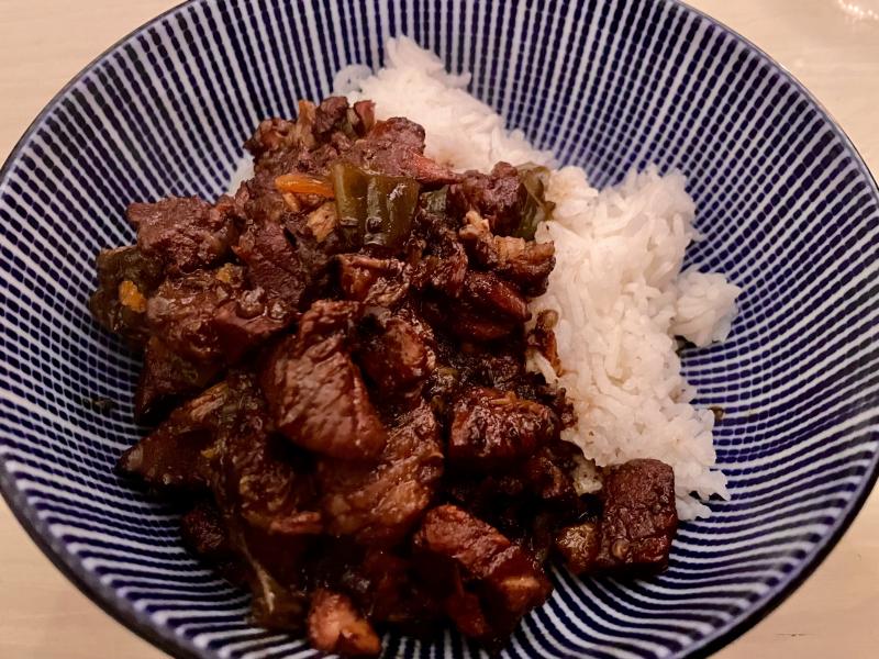 heute chinesisch: schweinefleisch mit 5-gewürze-pulver (selbst gemacht)
