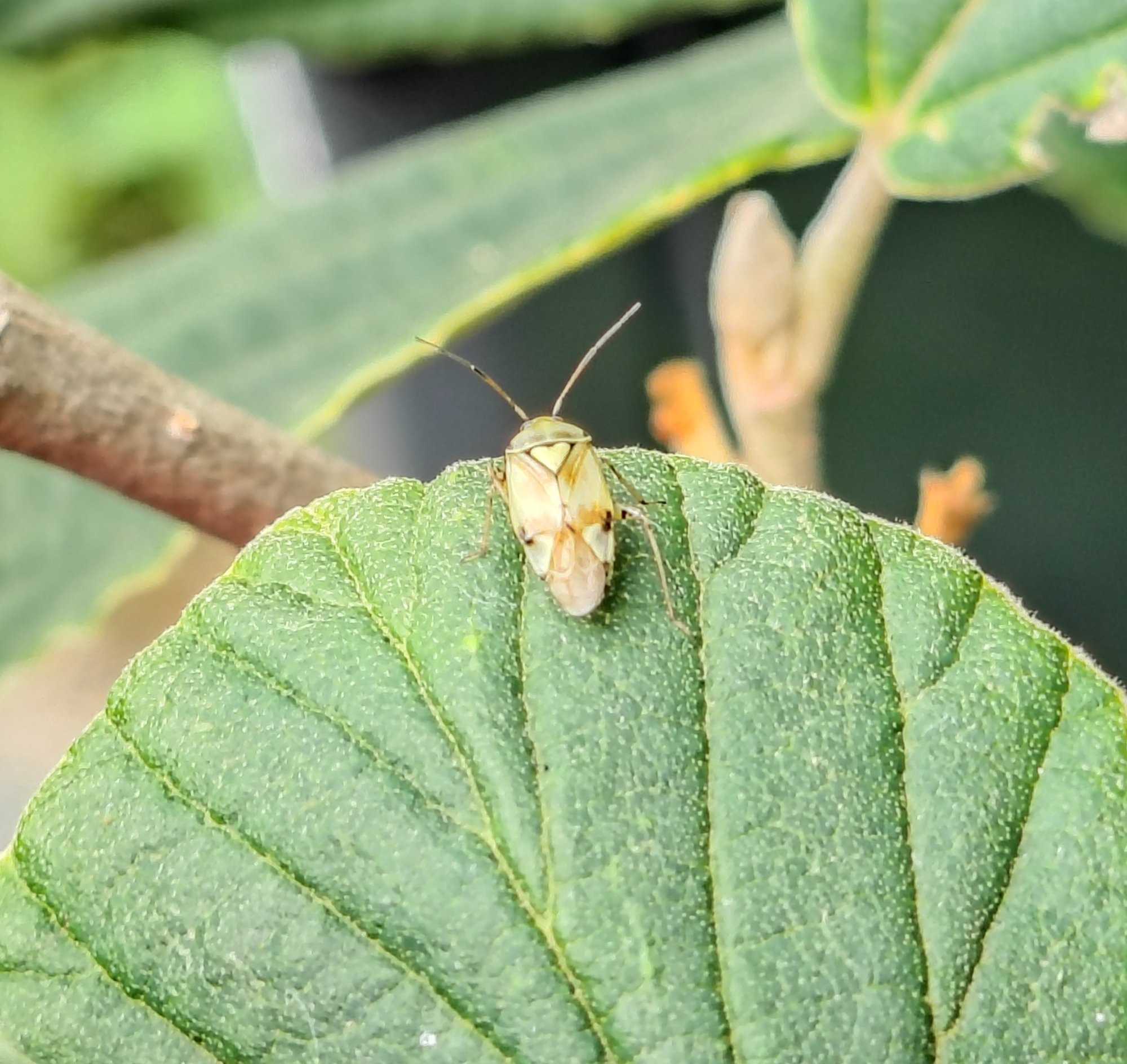 Baumwanzen. Sie überwintert als einzige Baumwanzenart bei uns nicht als erwachsenes Tier, sondern als Larve. Hier auf einer Birkenfeige im Haus: