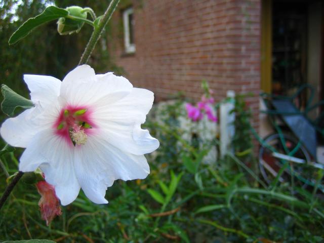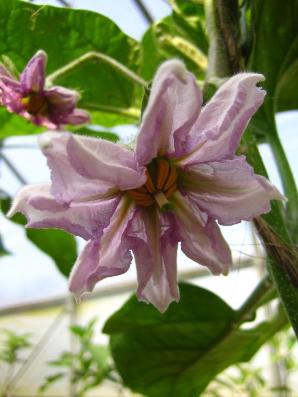 Gaura finde ich auch wunderschön. Nach etlichen Versuchen mit Kältetod-Ende hatte ich vor Jahren eine rosa und eine weiße in Töpfen auf der Terrasse stehen - und die haben sich beide am Abhang ausgesät! Die weiße ist natürlich viel größer, sie wächst von Jahr zu Jahr. Aus dem Frühsommer stammt das persönliche Foto links. Hier poste ich ein Septemberbild von Anfang des Monats: Auberginenblüte