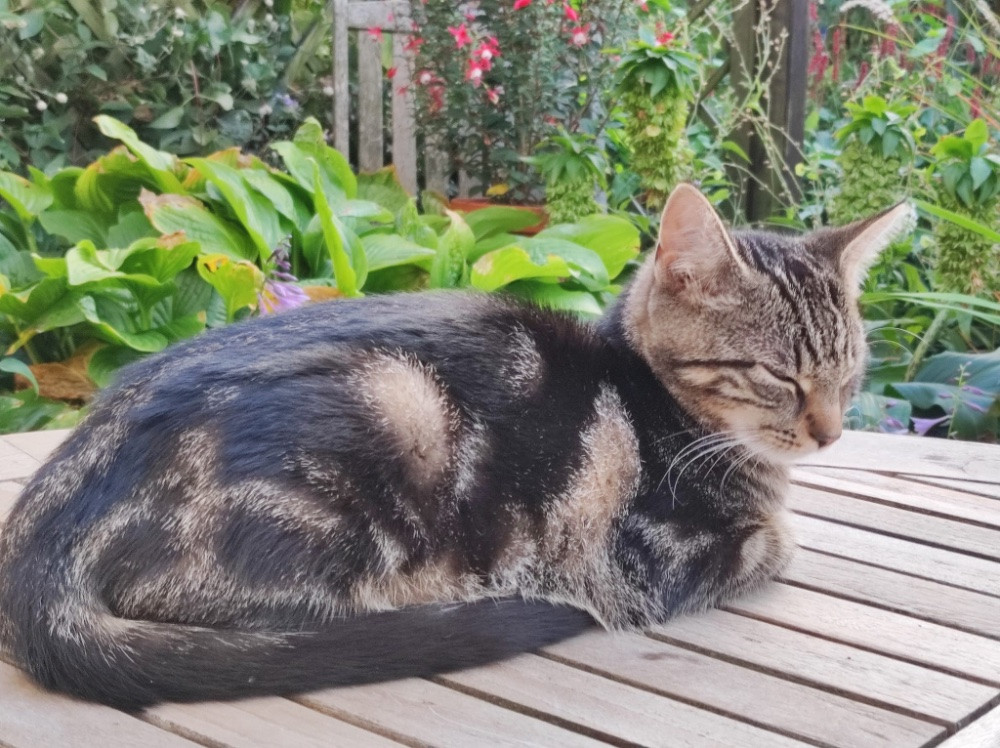 Unsere Tochter und Schwiegersohn haben dann meine Frau überredet eine kleine Katze zu nehmen. 4 kleine mussten wegen ungewollter Schwangerschaft untergebracht werden. Meine Frau hat sich dann breitschlagen aber nur mit dem Versprechen, die Katze wieder zurückzunehmen, wenn wir vor der Katze versterben, was ja nicht unwahrscheinlich ist. Jetzt ist die Kleine 7 Monate und macht den Garten unsicher. Ich hoffe auf reichlichen Mäusefang