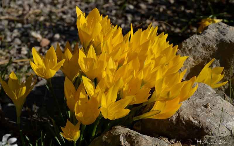 Hier geht es nach dem ersten Regen auch mit den Herbstblühern los, Sternbergia angustifolia