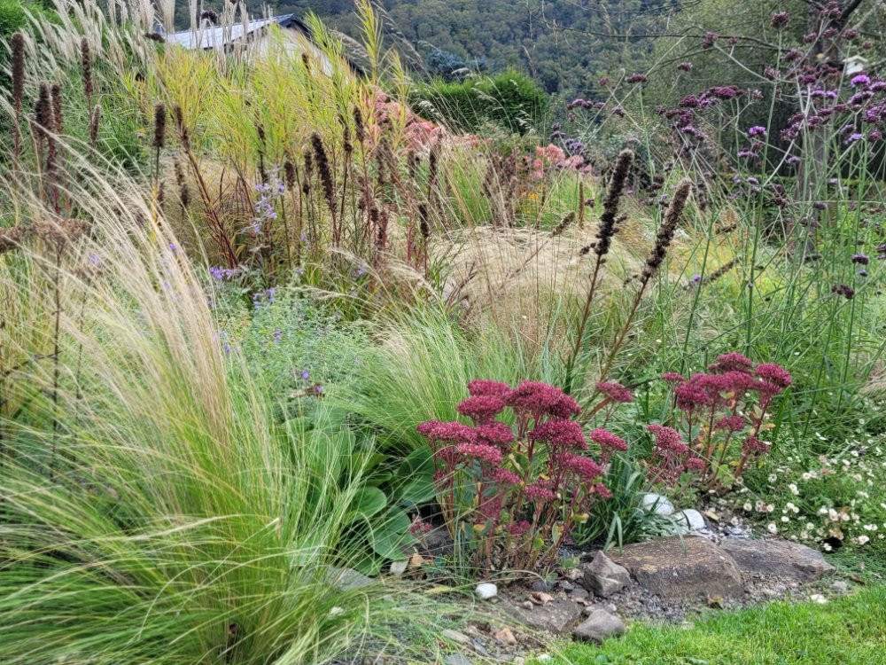Stipa tenuissima. Trotz des ewigen Regens sehr präsent...