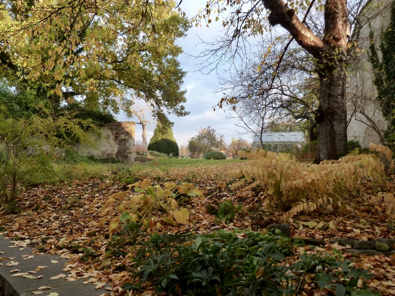 Vom Eßzimmer aus in den Vorgarten. Bis vor zwei Tagen war die Eiche noch rot: