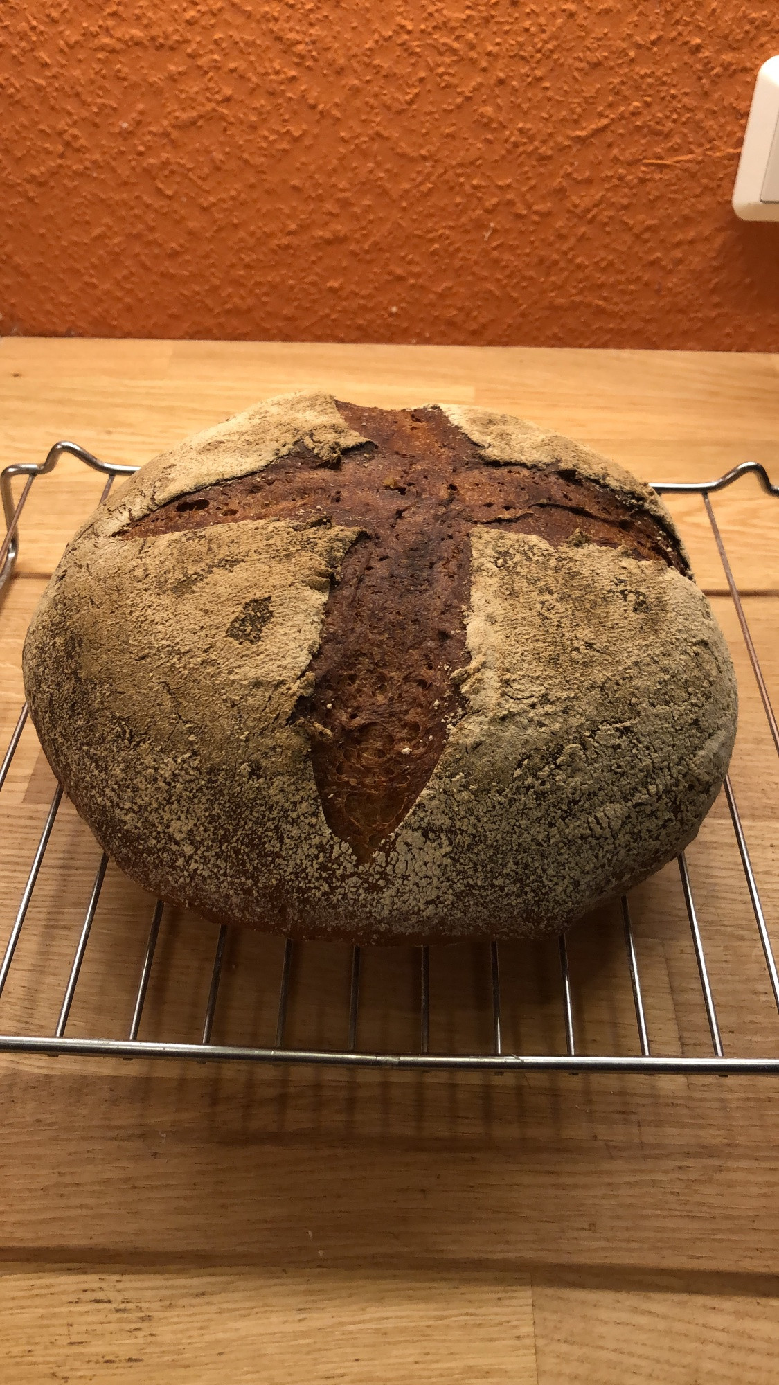 Heute Schwarzwälder Brot die 3. nachdem das letzte Brot nicht richtig aufging und breit lief. Im Endergebnis ist es zwar innen lecker, aber außen flach und hart, das ist nicht so dolle. Ich werde jetzt mal wieder den Holzofen in Schwung bringen