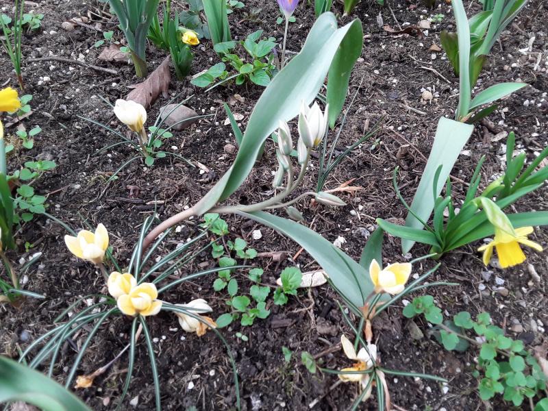 Hier wird die Tulpenblüte dieses Jahr sehr dürftig, aktuell blühen ein paar T. turkestanica, aber selbst die ansonsten so zuverlässigen 'Purissima' haben nur eine Handvoll Knospen, praktisch alle anderen nur einzelne Blätter. An zu wenig Dünger hat es diesmal nicht gelegen, im sommerlichen Dauerregen konnten die meisten Zwiebeln aber nicht ausreifen und sind zum Teil sicher auch einfach vergammelt.