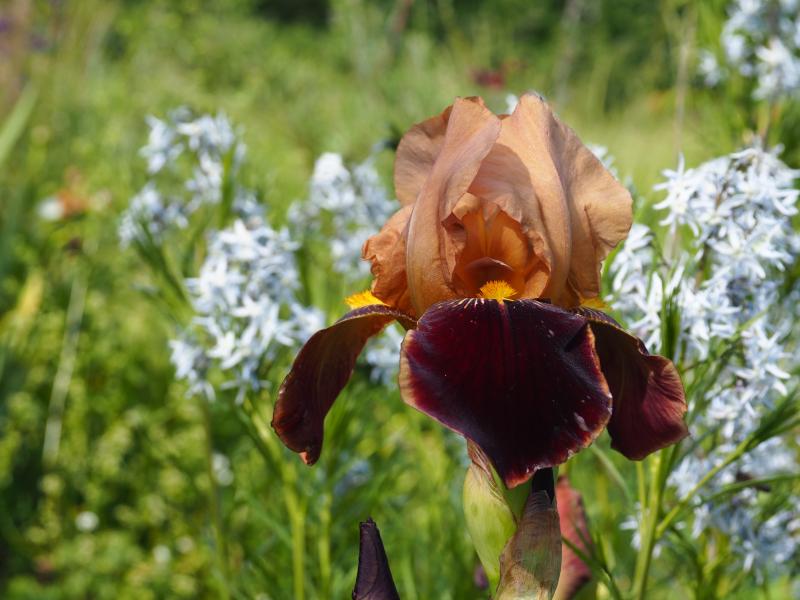 auf jeden Fall ist es eine Amoena, weißer Dom, farbige Hängeblätter. Und sie ist sehr alt, das sieht man an der Aderung der Hängeblätter. Vermutlich gibt es keinen Sortennamen. Solche Pflanzen gab es bevor Schwertlilien gezielt gezüchtet wurden.