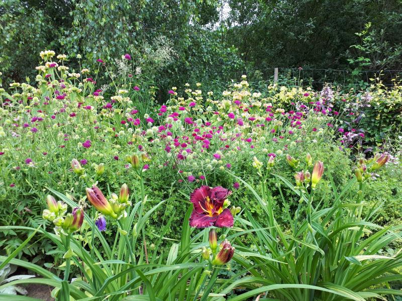 Endlich beginnt auch hier die Hemerocallis Blütezeit, hier mit 'Purplelishous'. Den Taglilien gefällt das feuchte Wetter, abgesehen von ein paar Regenflecken auf den Blüten, recht gut. Sie sind voller Knospen. :D