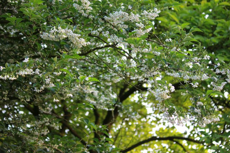 Aus der Entfernung dachte ich zunächst, es seien Halesia-Blüten, die so leuchteten im Park. 'Styrax japonica' wird wohl eher passen...