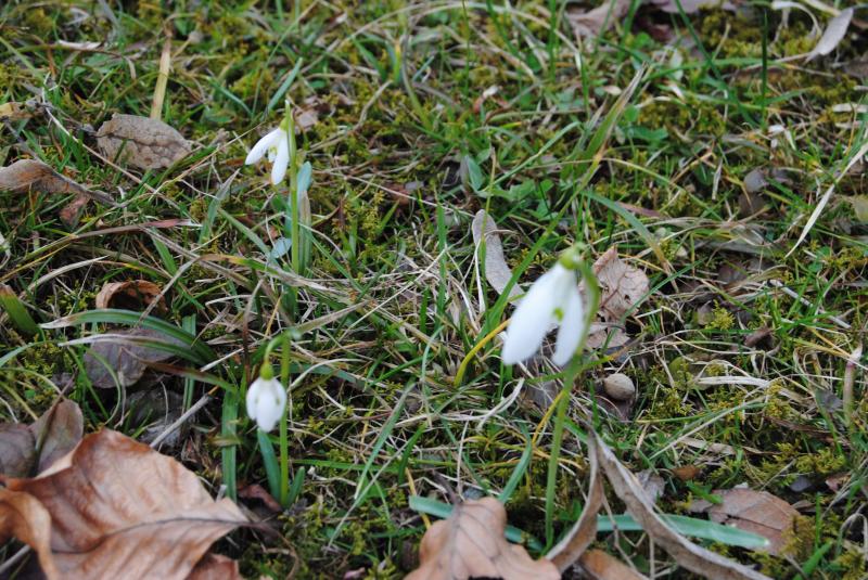 In den letzten Tagen fielen mir zwei Glöckchen auf - offenbar nivalis - die durch ihre Größe absolut herausstechen. Die Höhe von etwa 20 cm ist noch nicht so ungewöhnlich, aber die Blüten sind recht groß.