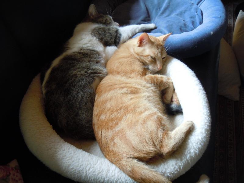 der rote heißt Ricci ... der andere Nikkebeide haben wir gleichzeitig aus dem Tierheim mitgenommen. Ricci ist der Frauenkater und Nikke geht zu GG. Katzen/Kater haben wir schon lange, es ist jede/jeder anders vom Charakter. Bislang ist Nikke eindeutig die Mimose darunter.Morgens oft muffelig (unausgeschlafen), wenn was nicht nach seiner Nase geht, bekommt der Ricci Kloppe. Dazwischen gehennützt nix, dann bekommt er sie später. Wenn sie schlafen, sind beide sehr lieb.Wir haben immer Freigänger.