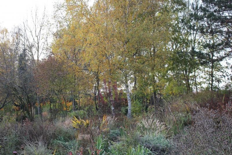 Zunächst einmal unser Staudenbeet in Richtung oberen Birken: