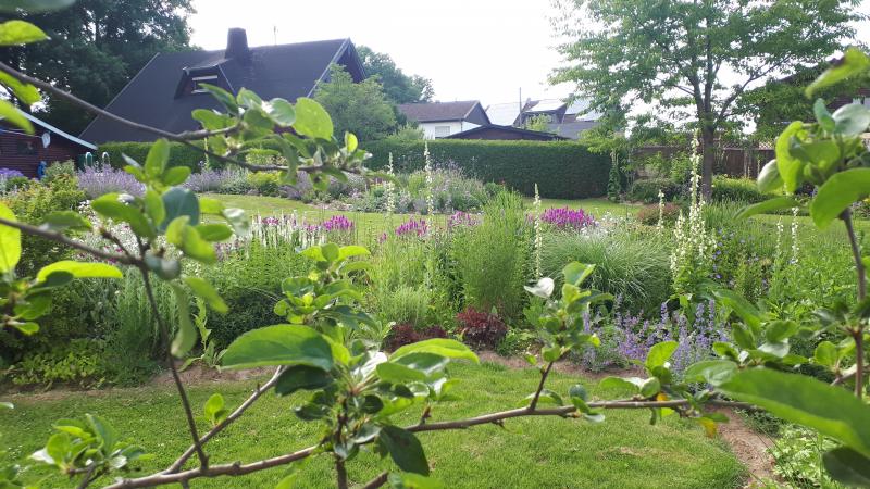 Besonders gefallen mir die weißen Königskerzen überall in den Beeten, erhalten die sich selbst, oder pflanzt Du immer mal wieder Sämlinge an die "passende" Stelle? Bei mir tauchen sie nämlich immer irgendwo auf, nur nicht da, wo man sie haben will...