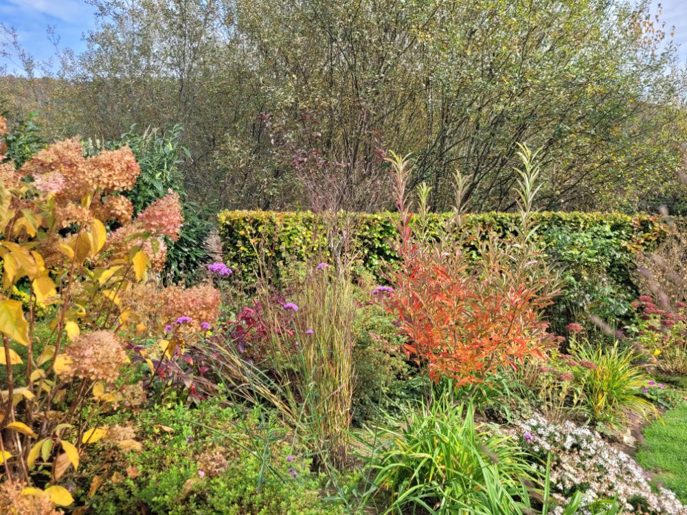 Der Etagenschneeball 'Mariesii ' blüht immernoch zum 2. Mal in diesem Herbst.