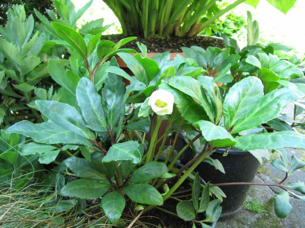 Die Helleborus niger, die ich habe, haben sehr breitgestreute Blütezeiten - von zweien, die bisher immer im November blühen über welche, die "normal" im März blühen bis zu welchen, die erst im April anfangen zu blühen.Allerdings war ich auch etwas über das Fundstück in meinem Eibenhain letzte Woche erstaunt: