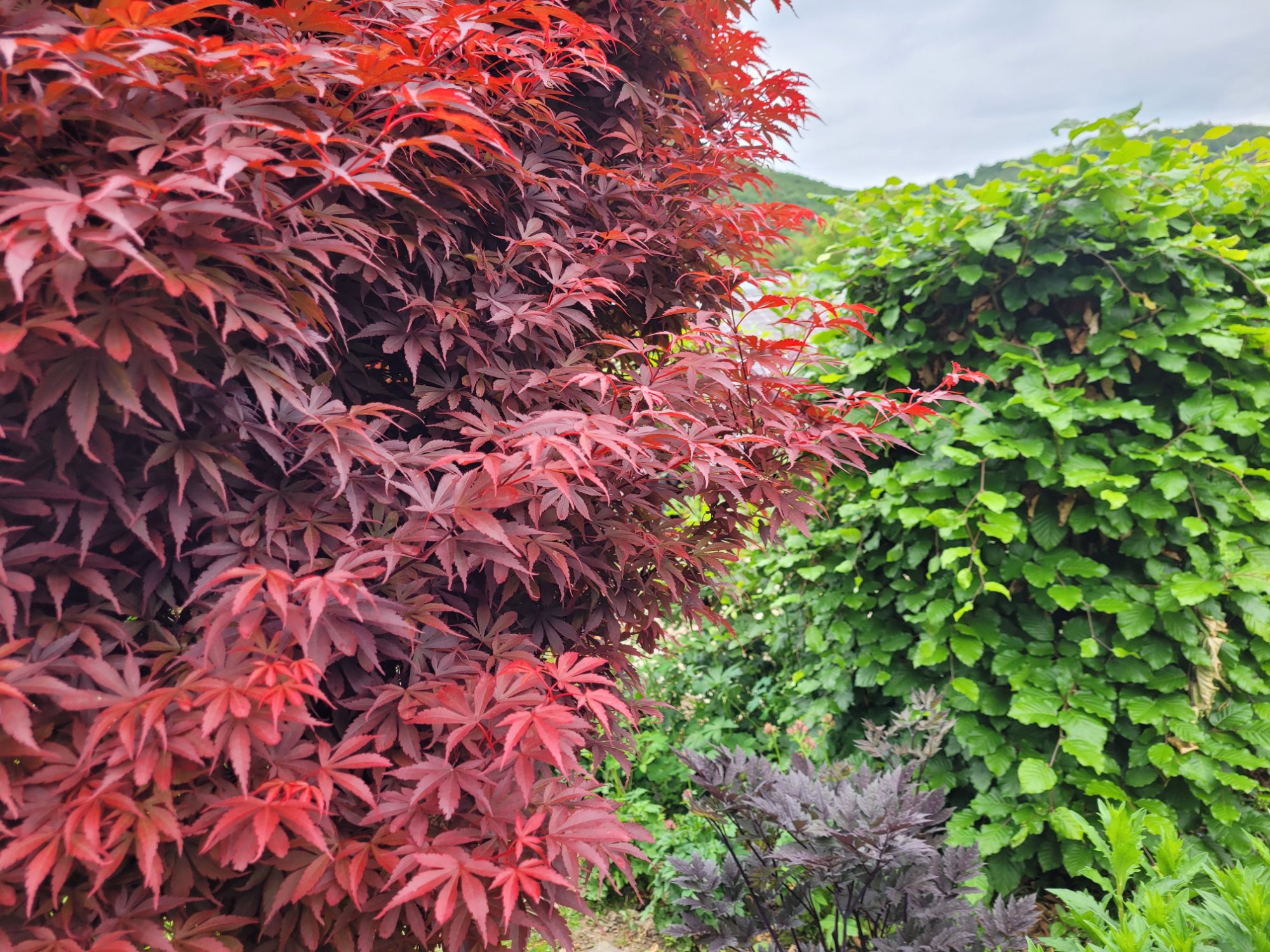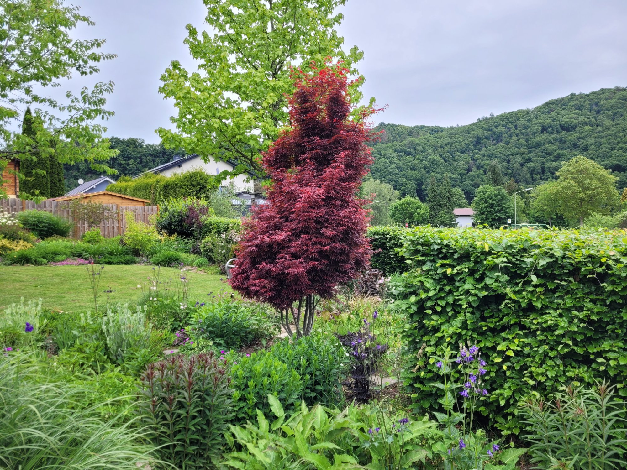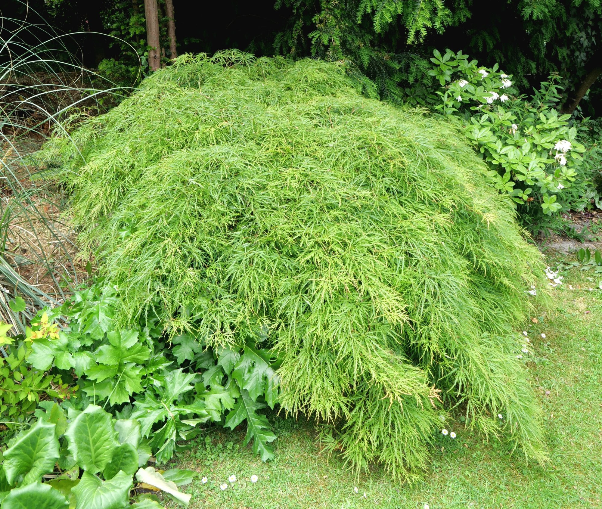 @Waldschrat: Dein als 'Garnet' betitelter Ahorn auf dem ersten Bild sieht mir nicht nach 'Garnet' aus, der rote 'Dissectum' weiter unten schon. Und klar wachsen die immer zum Weg, dort ist halt etwas mehr Licht, und Richtung Schatten wachsen die wenigsten Pflanzen.