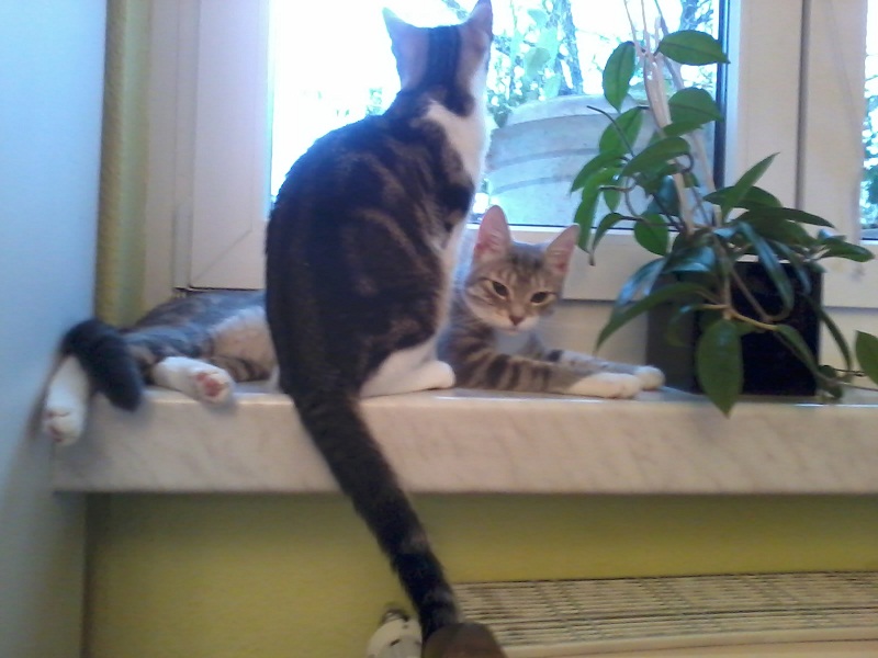 Die Jäger ziehen hier direkt durch den Ort. Ich stand auf dem Friedhof und der Jäger direkt hinter der Hecke am angrenzenden "Wäldchen", das von Häusern umgeben ist. Tja, wenn man dort getroffen wird, können die einen gleich liegen lassen ::)Erschossen wurde hier noch keine Katze (wenigstens keine von unseren). Überfahren leider schon. Aber ich könnt sie trotzdem nicht im Haus einsperrenDer Willi muss glaub ich doch etwas eher zum kastrieren. Der sitzt immer auf Cookie drauf und beißt ihr in den Nacken. Sie beißt ihn zwar weg, aber er "übt" wohl schon