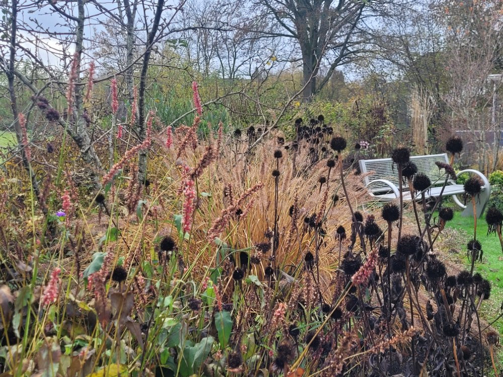 Weiter zum Präriebeet, wo ein wildes Gewusel aus Gräsern und Staudenresten jetzt den Ton angibt. ;)
