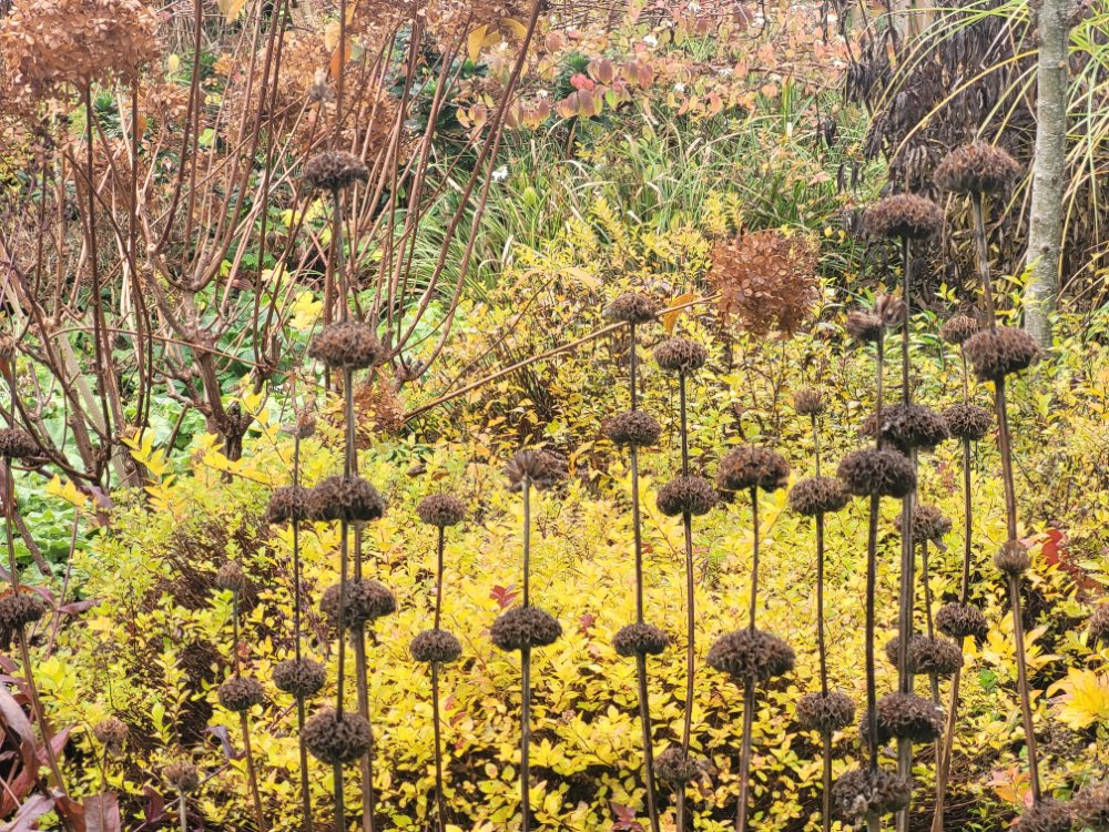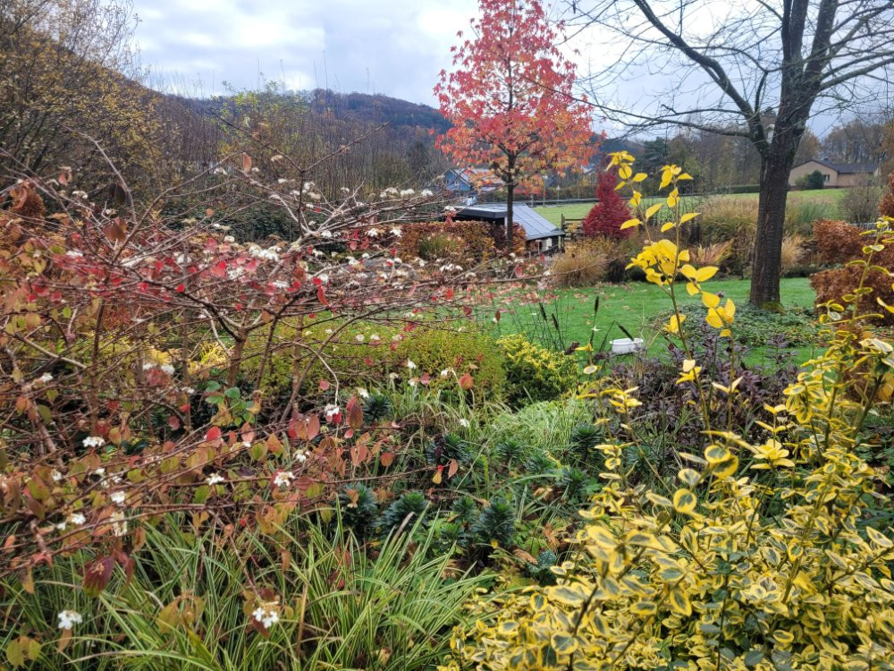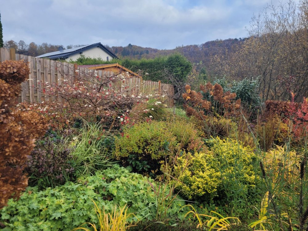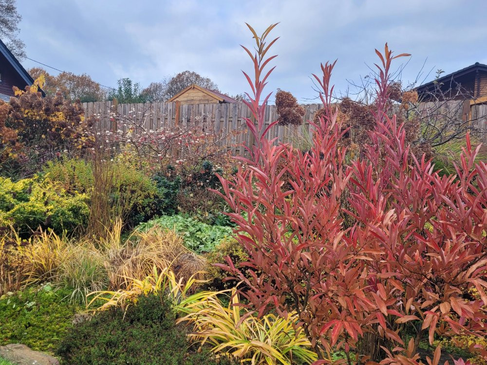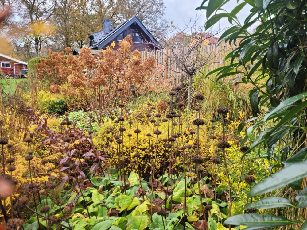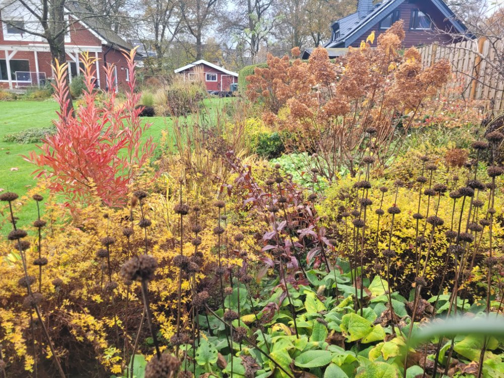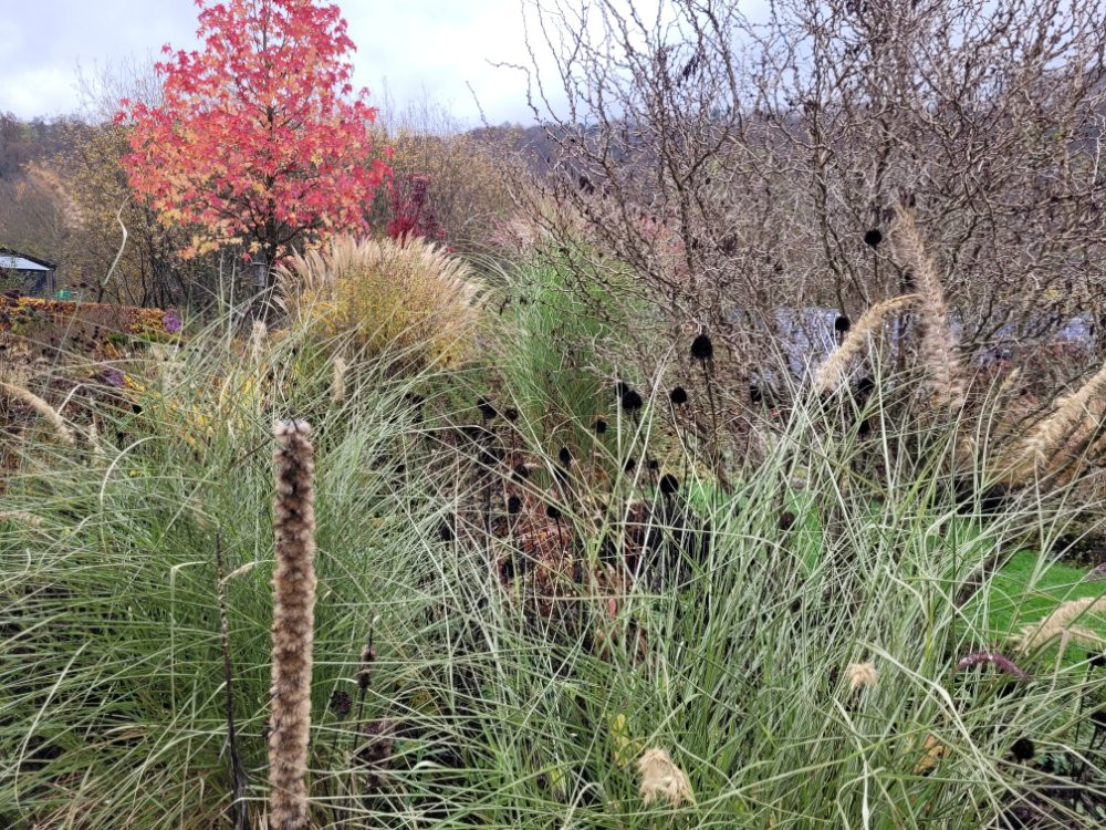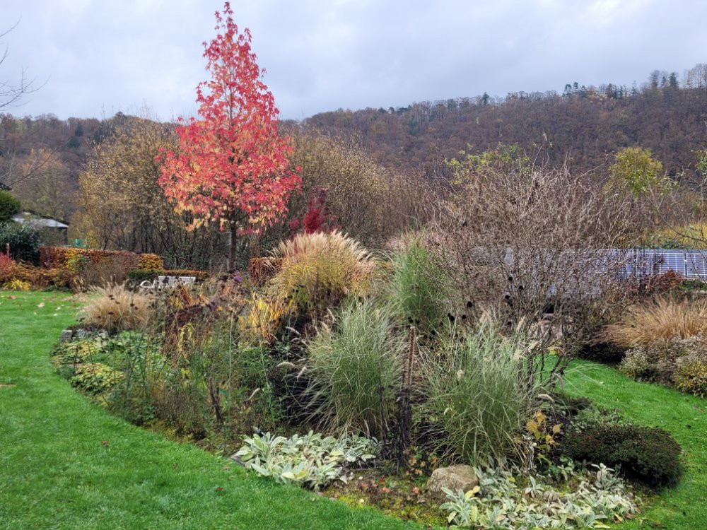 Jetzt gibt es nur nochvwenig Blühendes zu bestaunen. Die Farben und Blattstrukturen der Gräser, Stauden und Gehölze ist aber- wie ich finde- nicht weniger beeindruckend . ;D