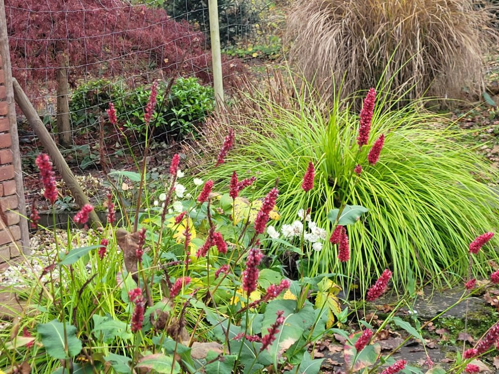 Noch ein kurzer Blick ins Westbeet, wo Bistorta amplexicaulis 'Blackfield ' noch immer nicht aufgibt. :D