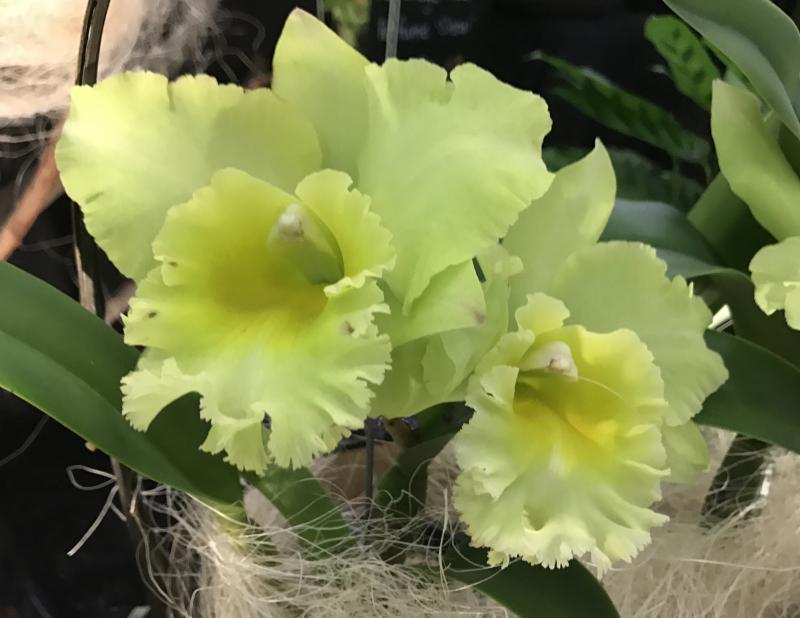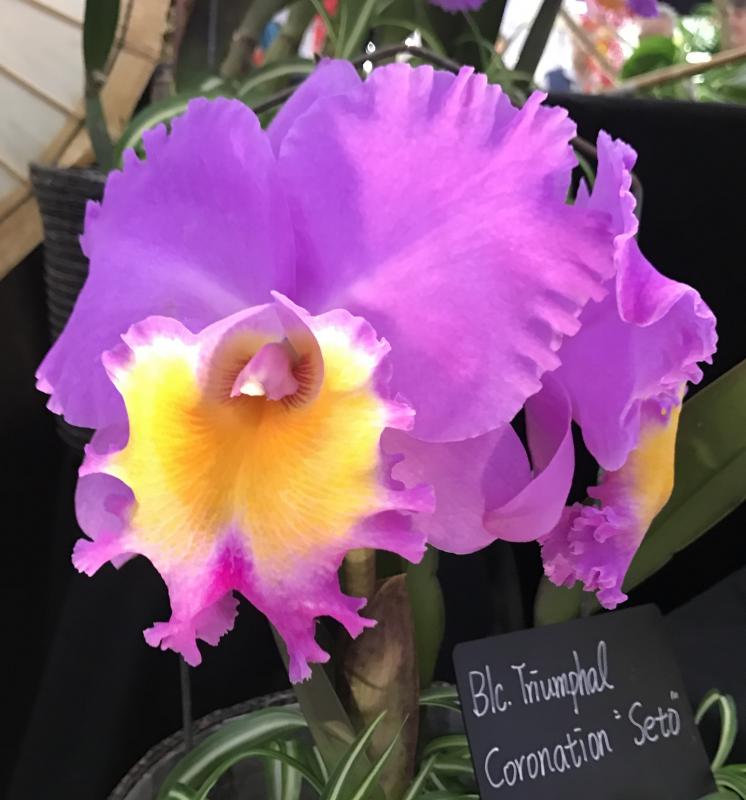 Viel Bewunderung bekommen immer die bunten Hybriden der Cattleya-Verwandtschaft aus Südostasien. Mein Fall sind die tellergroßen Rüschengebilde nicht unbedingt... hier Brassolaeliocattleya Triumphal Coronation 'Seto'