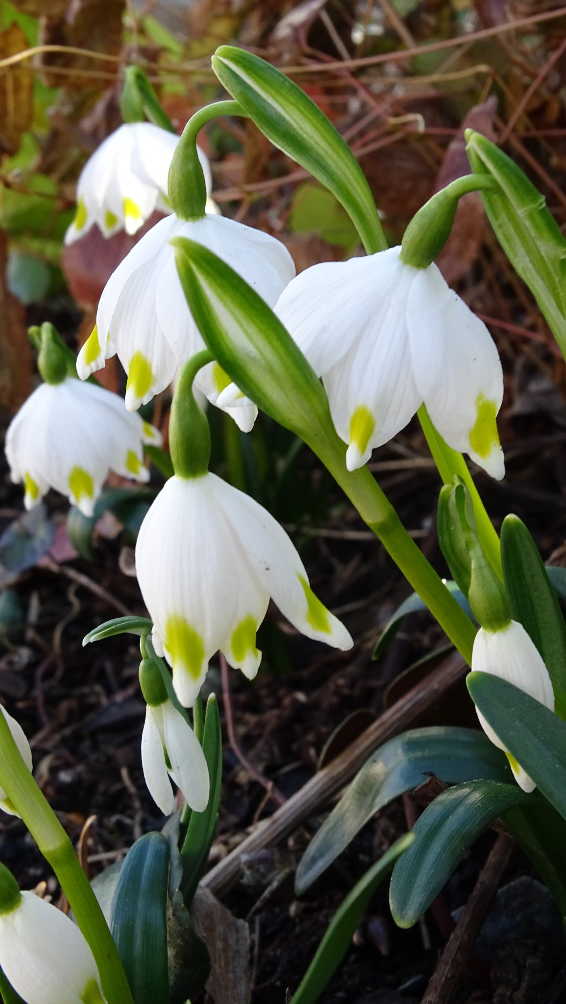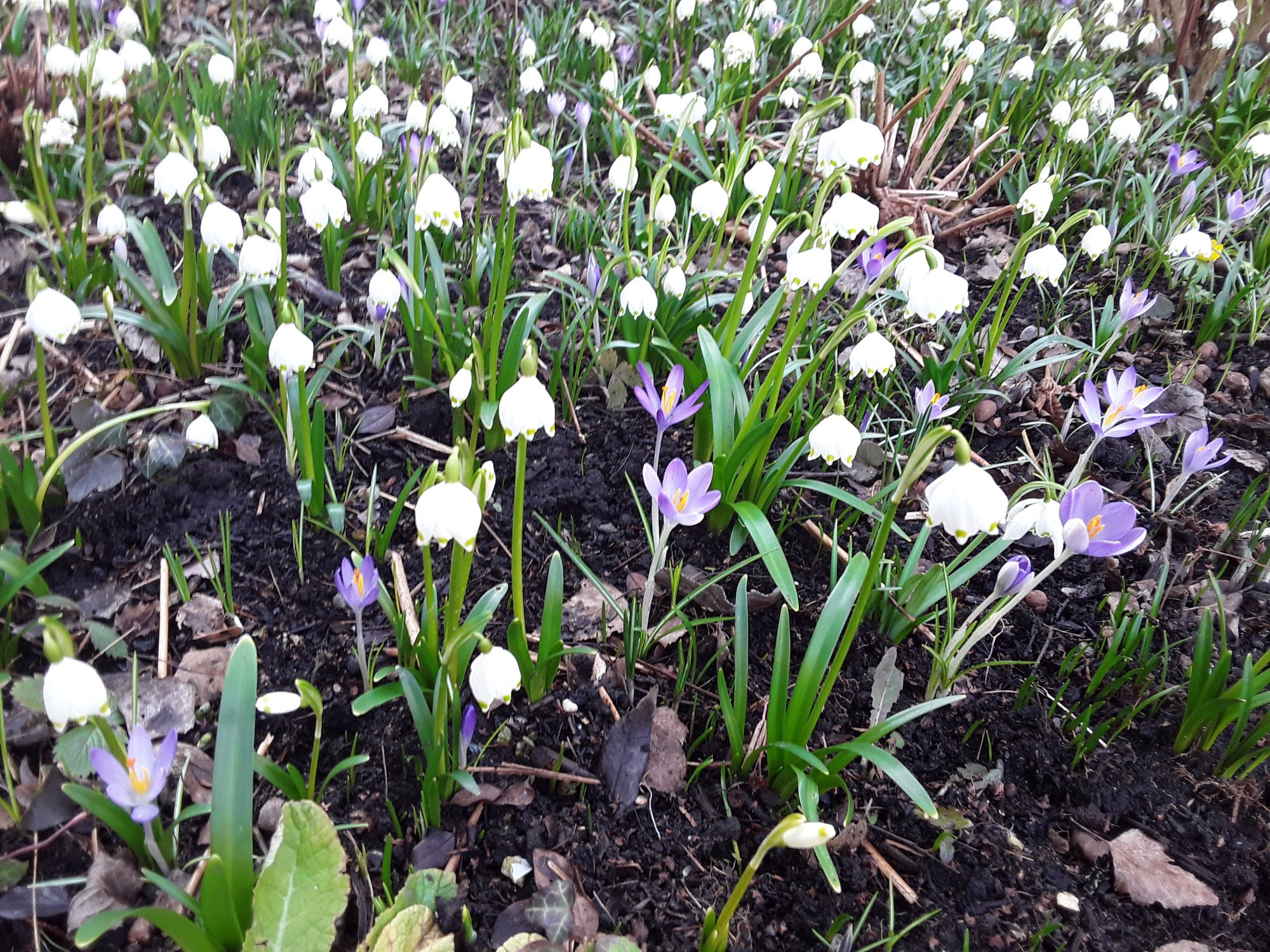 Diverse Leucojum vernum ! Ich denke jetzt ist eine gute Zeit für die Entnahme von cca. 10 Pflanzen und "in the green" an schattigen Stellen unter Bäumen einpflanzen.