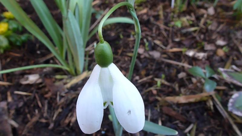 Galanthus nivalis 'Greenish' ist mein kleinstes Schneeglöckchen und ergrünt langsam!