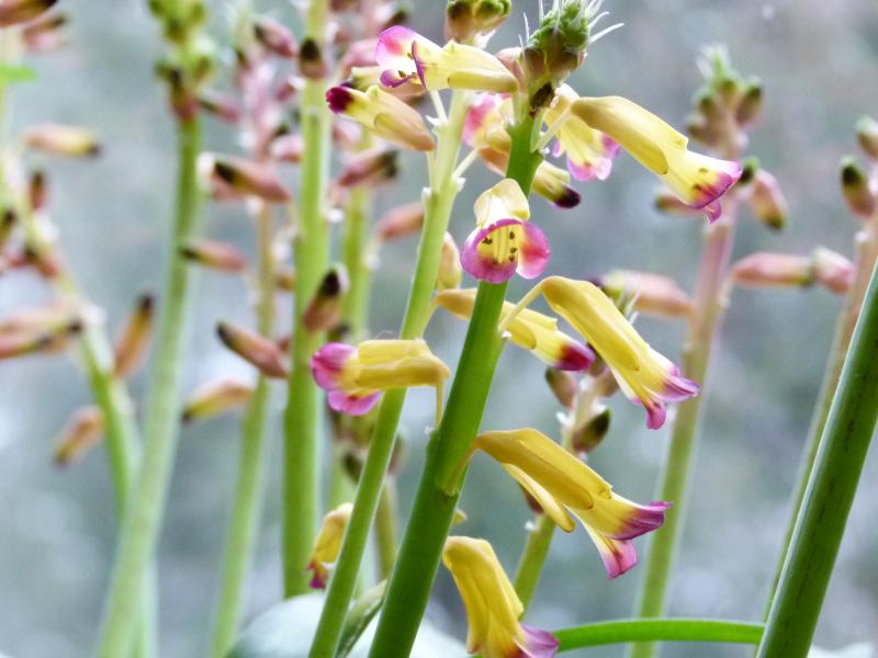 Lachenalia aloides ist bei der Kultur im kühlen Zimmer nicht ganz so glücklich, weil sie an den dunklen Wintertagen doch lieber etwas mehr Licht hätte. Diesen Winter haben Pflanzen davon profitiert, dass sie bis Januar weitgehend draußen bleiben konnten. Ein paar Nächte mit leichtem Frost überstehen sie sogar.E.