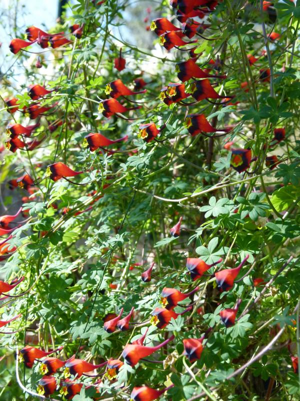 Nach vielen Anläufen hat es endlich geklappt mit Tropaeolum tricolor! : Die Knollen, die ich zuvor erhielt, waren T. brachyceras oder unschöne Hybriden zwischen den Arten mit grünlichen Kelchen. Diese ist dafür nun einfach sehr, sehr schön!
