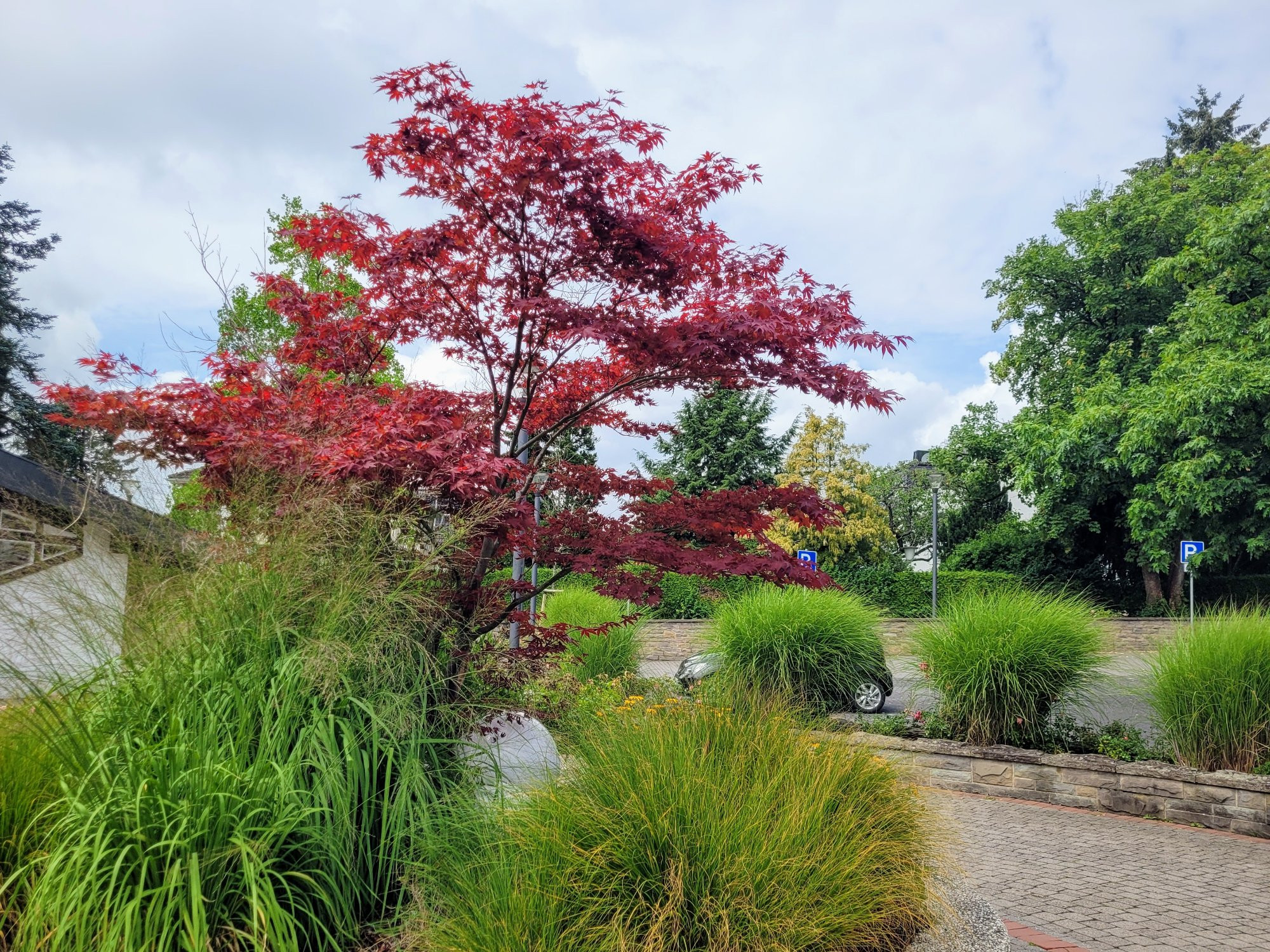 Sicher, dass es ein Acer japonicum ist? Das Laub sieht mir eher nach A. palmatum aus, womöglich 'Fireglow', dessen Blattunterseiten leuchten gegen den Himmel so schön glutrot. Aber Du hast recht, es ist ein wunderschönes Exemplar.