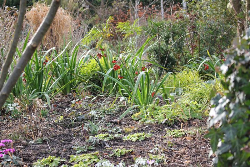 Im Vordergrund ist der Rückschnitt von Hakonechloa schon geschehen.