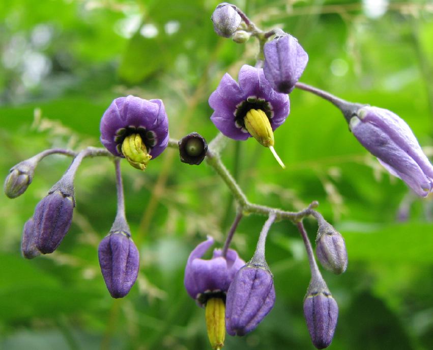 Bittersüßer Nachtschatten Solanum dulcamaraDie Art ist in Auenwäldern, auf Kahlschlägen, an Ufern, Gräben und in Hecken anzutreffen. Sie kommt zerstreut vor, am geeigneten Standort allerdings meist in kleinen Beständen. In der Pflanze sind verschiedene gilftige Alkaloide enthalten.