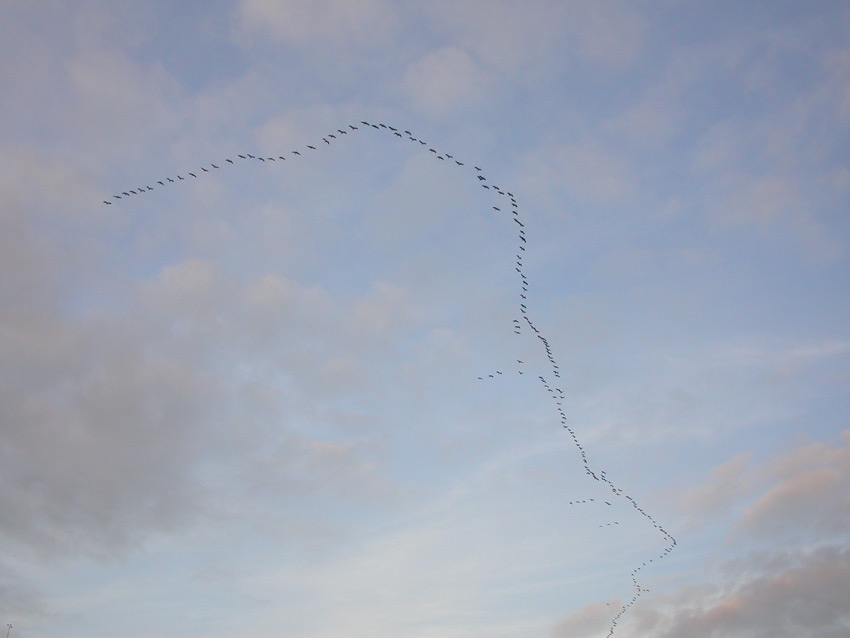 Das waren riesige Scharen von Kranichen, die in den letzten Tagen hier durchgezogen sind. Sind ein bißchen spät dran, aber das paßt ja zum Klimawandel...Hier steht ein bißchen was dazu.Ich dachte, die Zugvögel wären längst im Winterquartier angekommen