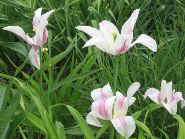 Erst wenn alle anderen verblüht sind startet Tulipa sprengeri. Die schlanken roten Blüten passen in fast jede Gartensituation. Leider, leider ist sie selten in Kultur. Kein Wunder, da sie sich nur aus Saat vermehren läßt. Oft werden jedoch Brutzwiebelbildner unter diesem Namen verkauft. Diese sind jedoch Hybriden und nicht die reine Art. Muß mal nachschauen wie die hießen.
