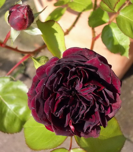 mit "Tradescant", tiefes dunkelrot, duftet wie plöd, phantastische Wuchsform und heißt eben nicht "Ulrich B.", von dem habe ich nämlich gerade kein Foto. Huiii