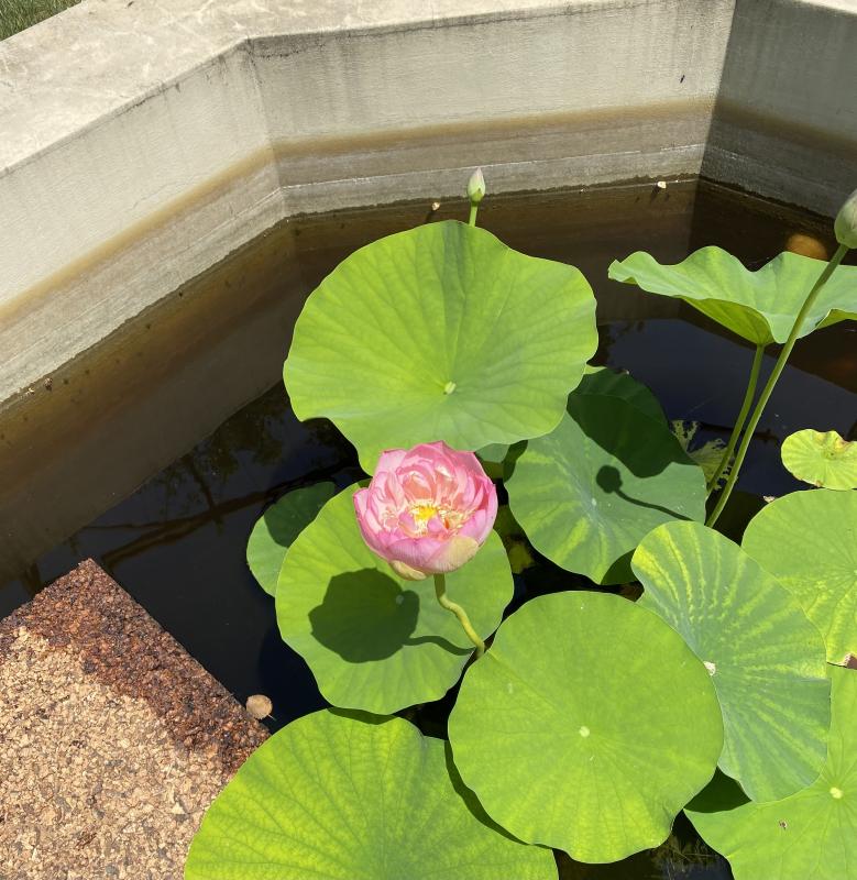 Es wäre schön - dachte ich mir - wenn die Lotosblätter nach und nach die Wasseroberfläche in der Zisterne bedecken und ich nur eine kleine Stelle frei lasse um Gießwasser zu schöpfen.