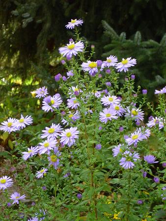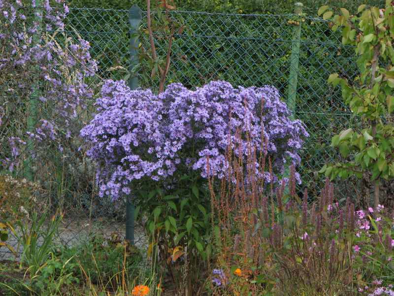 Leider mögen es Astern bei mir nicht besonders, es ist ihnen im Herbst einfach zu schattig, da die Sonne nur noch sehr selten übers Haus in meinen Hinterhof scheint. :'(Eine Sorte aber ist immer sehr verläßlich und bildet einen riesigen Busch Aster 'Lady in Black', die zwar erst ab Anfang Oktober ihre prachtvolle Blüte beginnt, aber das dann bis zum ersten Frost, meist im Dezember! :DDiese Jahr 1,8 m hoch und 2 m breit!