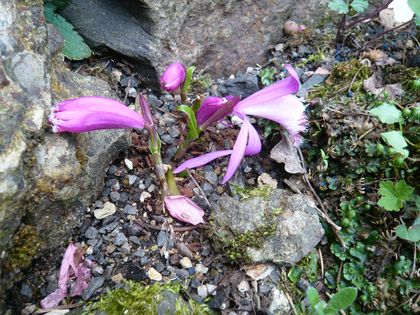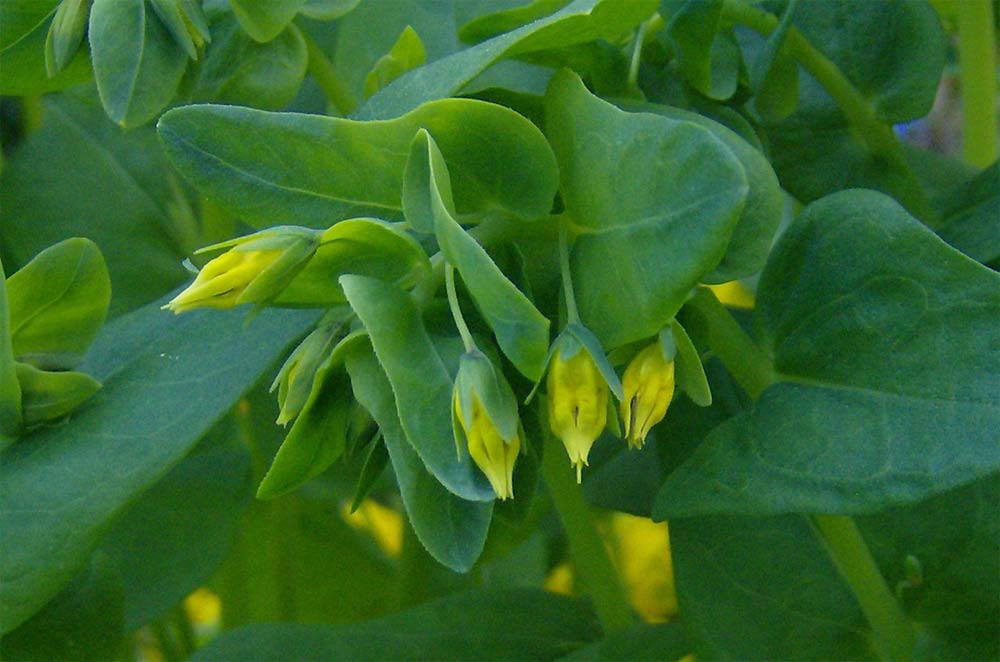 Ein etwas mißglücktes Experiment: Im Jahr 2007 konnte ich ein paar Samen von Cerinthe minor, der kleinen Wachsblume sammeln. Es muß ja nicht immer Cerinthe major var. purpurascens sein, dachte ich.Ein Sämling kam durch und bildete einen ansprechenden, buschigen Horst; allerdings viel größer als erwartet (ca 50 cm hoch; weiß der Teufel, wer den Namen Cerinthe minor erfunden hat); siehe Bild.