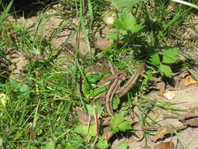 Hallo!Da ich seit einigen Tagen ein Zauneidechsenmännchen im Kleingarten gesehen habe, habe ich heute mal den Fotoapparat mitgenommen... und konnte ein Pärchen bei der Paarung beobachten und aufs Foto bannen!!!