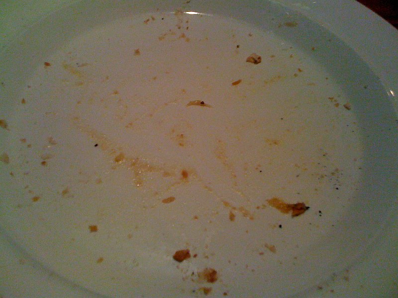 Es gab eine weiße Suppe mit Bratkartoffeln und Brot.