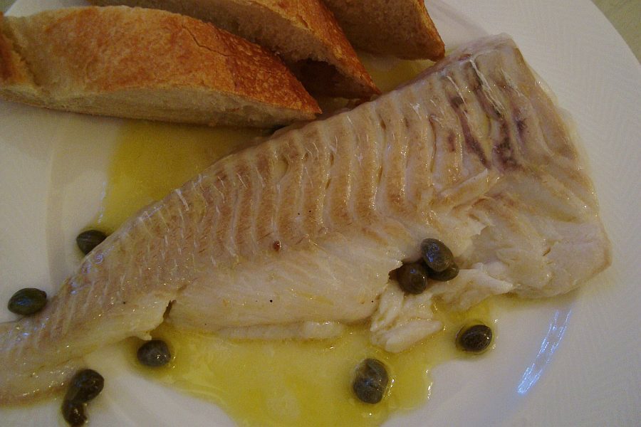freitag ist fischtag. :Des gab kabeljau mit kapern und kaviarbrot (ohne kaviar)...