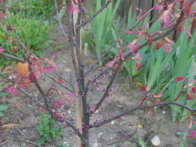 Ich dachte, Cercis blüht, bevor die Blätter kommen. Bei meinem Eternal Flame gibt es Blütenknospen und die Blätter treiben bereits aus.