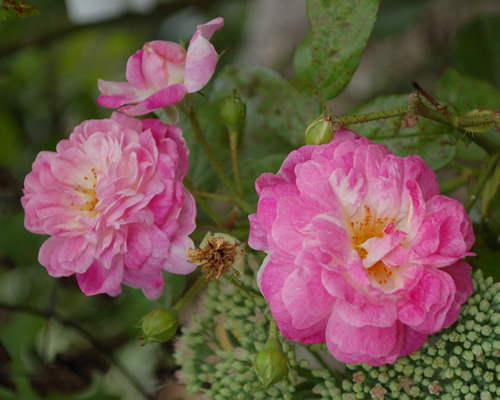 Vor einer Woche in der Baumschule Bischweiler, München.Diese Rosen sind mir als zu dieser Zeit noch besonders gesund und üppig blühend aufgefallen:the Fairy, ein Meer von süßen rosa Blüten, wirklich märchenhaft