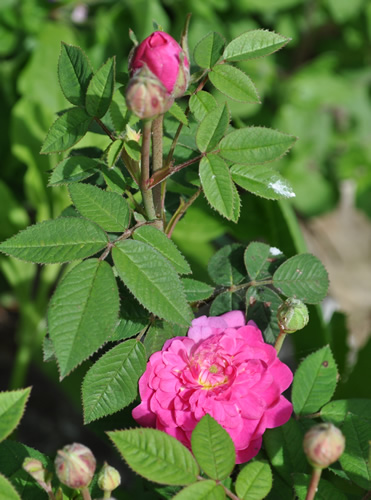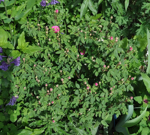 Diesen unbekannten Rosenstrauch habe ich gestern am Strassenrand bei einem Besuch einer offenen Gartentür entdeckt: