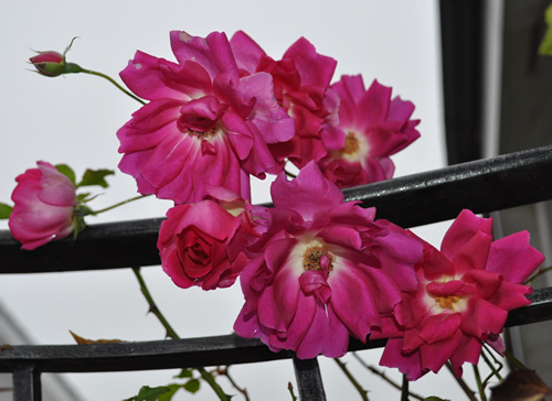 Lorenzo Pahisse, die Rose mit den Salatköpfen von Blüten. Hier in 4 m Höhe.Leider ist sie falsch, denn die richtige sieht ganz anders. Habe mich schon gewundert, dass sie sich vom Frühling bis jetzt auf mehr als 5 m Höhe aufgeschwungen und jetzt noch an jedem Triebende Knospen gebildet hat. Über 10 Knospen habe ich gezählt. Zu spät, ganz klar.Lorenzo Pahissa