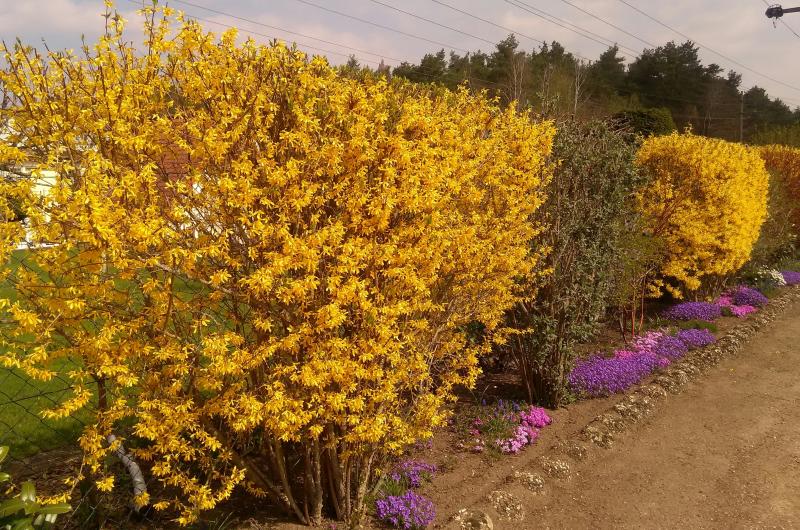 Meine Handycam kann die Farben nicht richtig, aber Forsythie mit verschiedenen Blaukissen unterpflanzt kann man sich ja vorstellen. (oder lieber doch nicht?) ;)