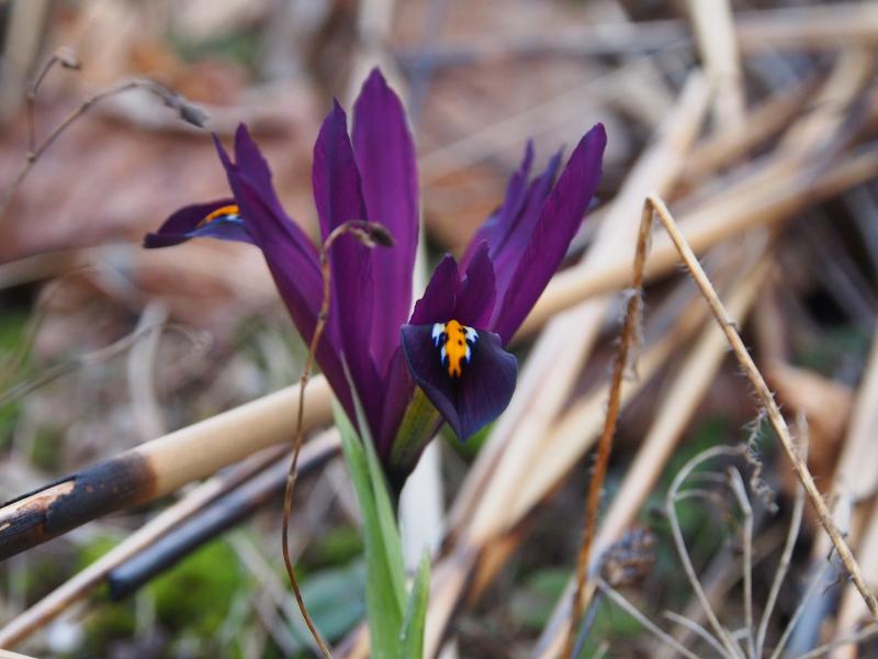 in der Farbe schätze ich am meisten Iris reticulata 'Pauline'. Die hatte ich vor 10 Jahren gepflanzt und inzwischen ist sie ganz verschwunden. 'Pauline' hat keinerlei gelben Fleck, sondern eine weiße Schlundmarkierung.