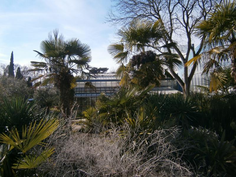 Es sind auch die Mittelmeerpalmen ausgepflanzt, verschiedene Chaemeropssorten.